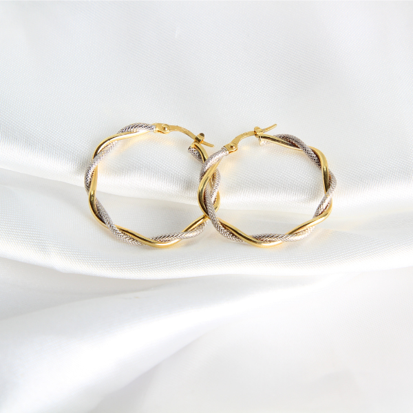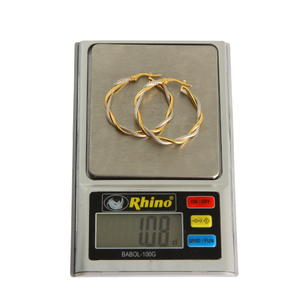 -Un par de arracadas fabricadas de oro sólido.