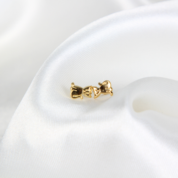 Broquel De Gato Oro 10k Arete Infantil Estuche De Regalo