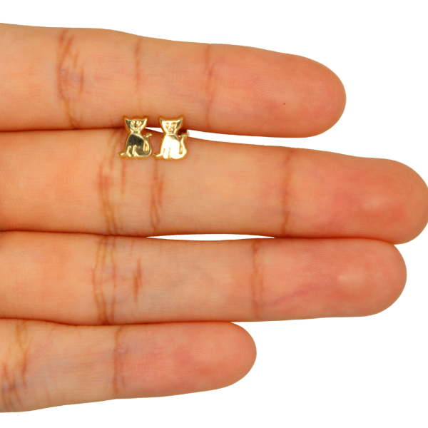 Broquel De Gato Oro 10k Arete Infantil Estuche De Regalo Para Niñas y Adultas
