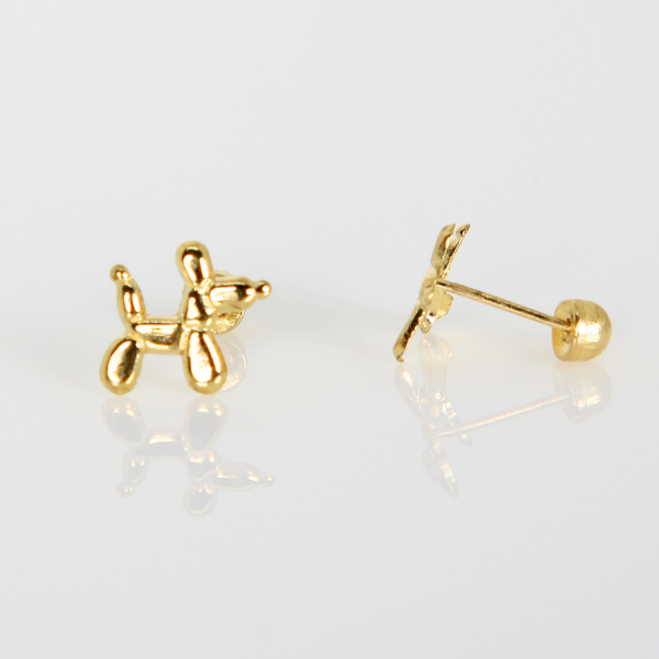 Broquel De Perro Globo Oro 10k Arete Infantil Estuche De Regalo