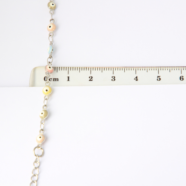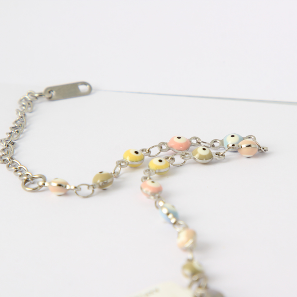 | PULSERA DE OJO TURCO COLORES PASTELES Cod: AXPLE222 Metal: ACERO INOXIDABLE MEDIDA: 15 CM TU COMPRA INCLUYE: -Una pulsera fabricada de ACERO INOXIDABLE. – Estuche de regalo |